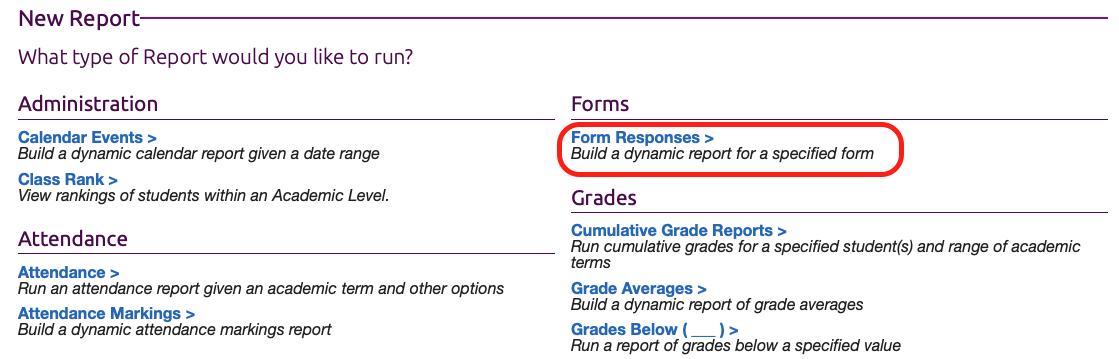 A Form Response report allows you to consolidate and organize form response data for a specific form